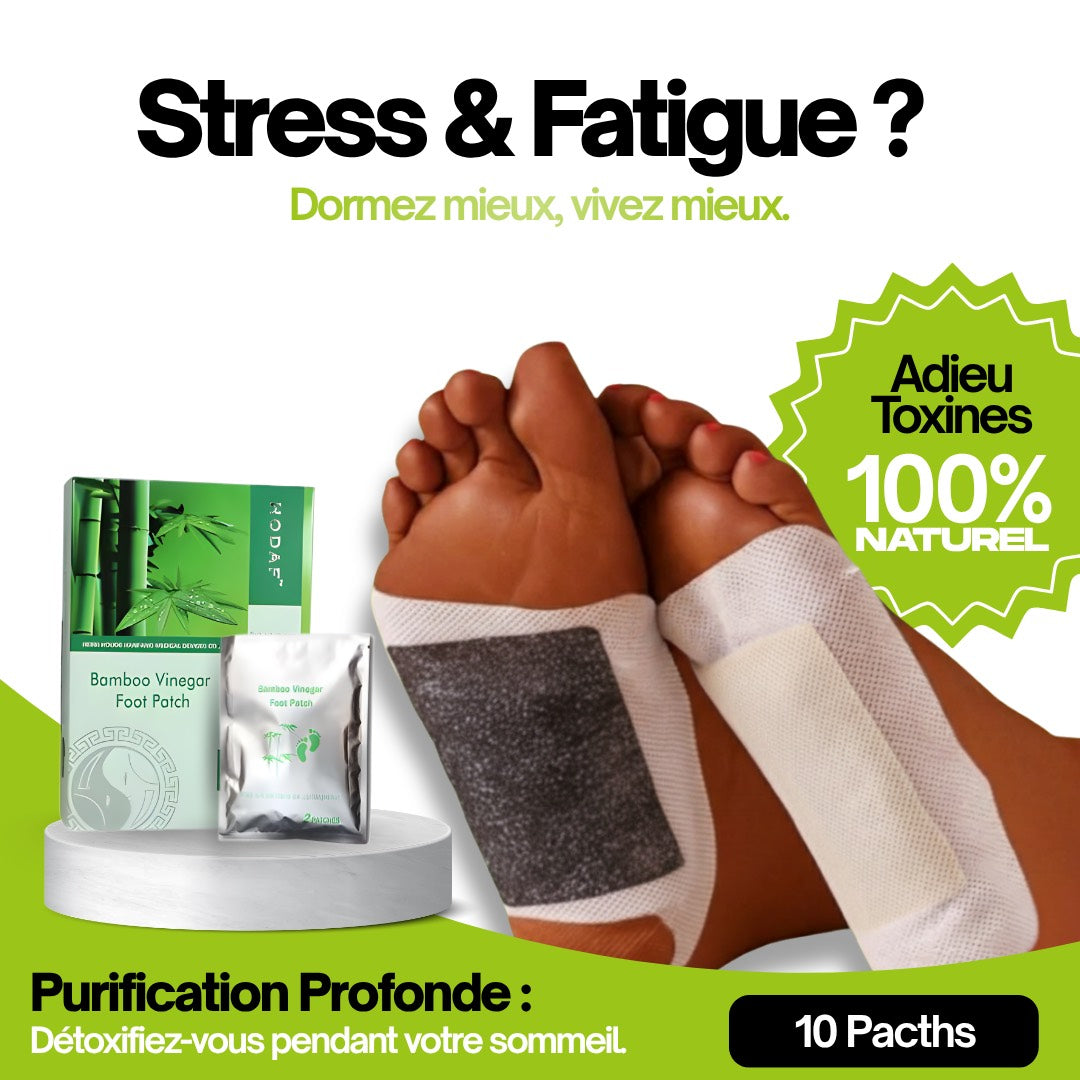 Le Patch DETOX agit pendant votre sommeil 😴. Grace au Vinaigre De Bambou Naturel et d'autre extraits végétaux , il aide à éliminé les Toxines accumulées dans le corps à travers la plante des pieds.